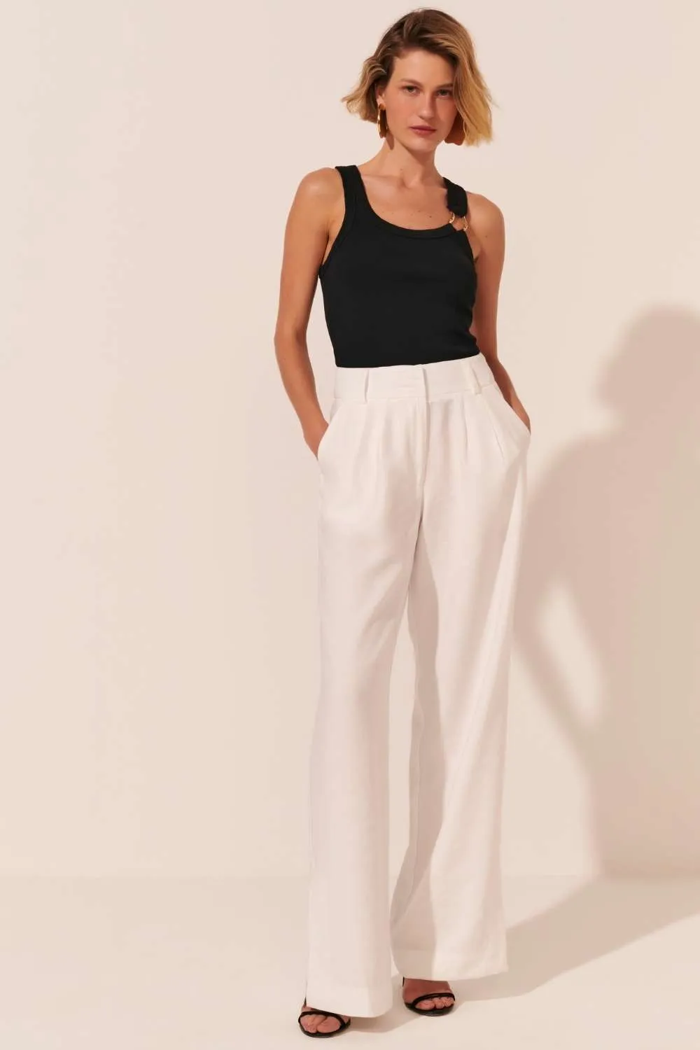 A Calça Marcelle é confeccionada em tecido plano, possui modelagem alfaiataria, cós com passante, bolsos frontais e posteriores, fechamento frontal e acabamento pespontado.