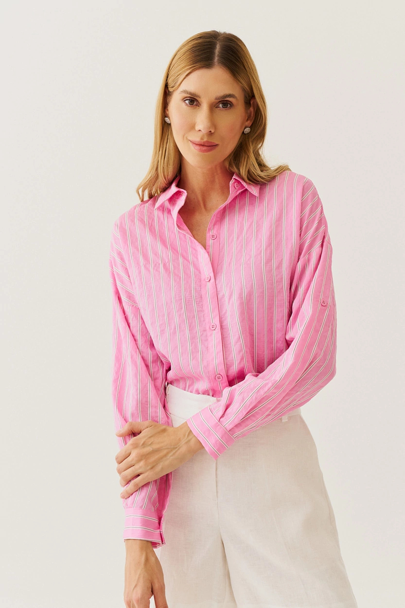 CAMISA TEXTURA LISTRA VISCOSE E POLIAMIDA