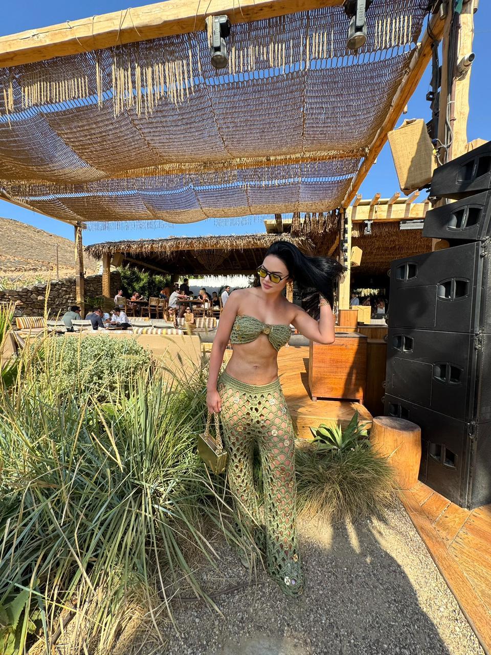 O look acompanha um shorts.