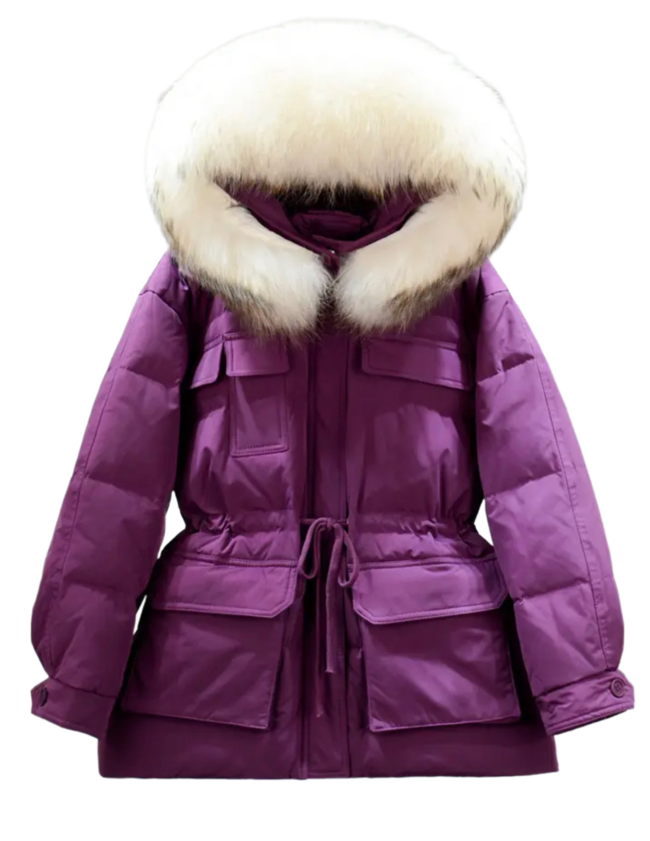Composição: Forrada com pluma de ganso & capuz removivel em pele genuina.