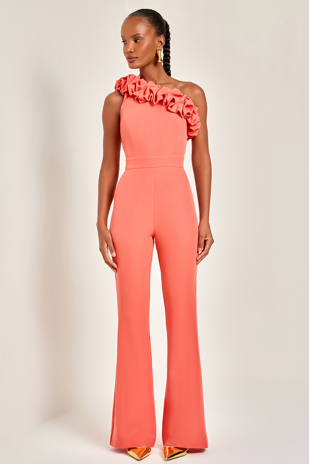 Macacão Origami confeccionado em crepe estruturado, proporcionando um caimento impecável e um toque sofisticado. O design de um ombro só é destacado por um decote com efeito origami, que adiciona um charme especial e moderno à peça. A calça bootcut alonga a silhueta e garante elegância e conforto. Ideal para eventos como coquetéis, festas ou jantares, este macacão é perfeito para quem busca um look fashion e impactante.